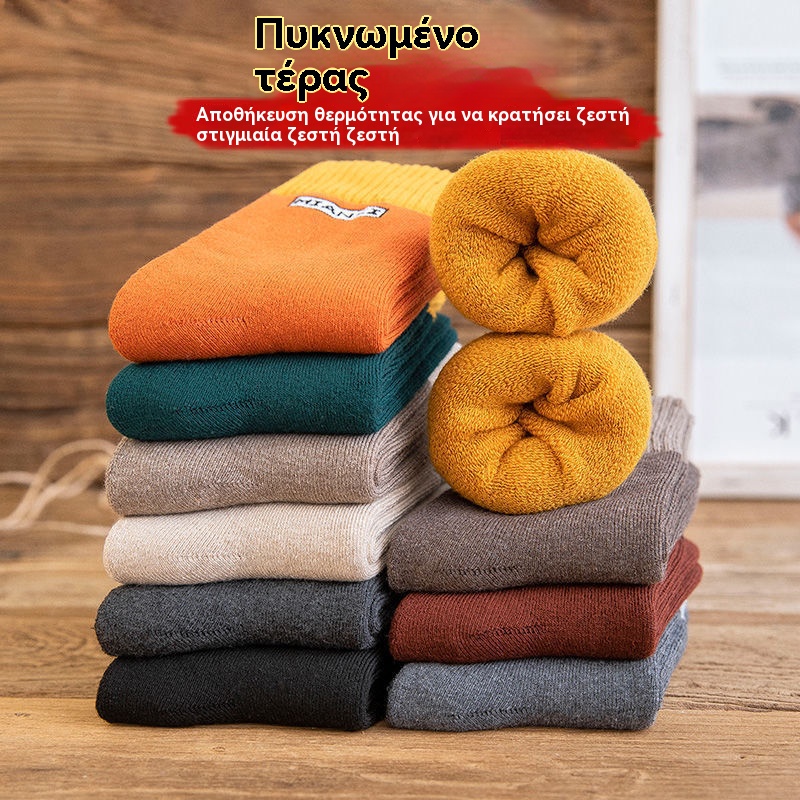 🧦【Αγοράστε 5 ζευγάρια, πάρτε 5 δωρεάν】🧦Χοντρές, ζεστές ανδρικές και γυναικείες κάλτσες μέχρι τη μέση της γάμπας, ζεστές κάλτσες από πετσετέ ύφασμα