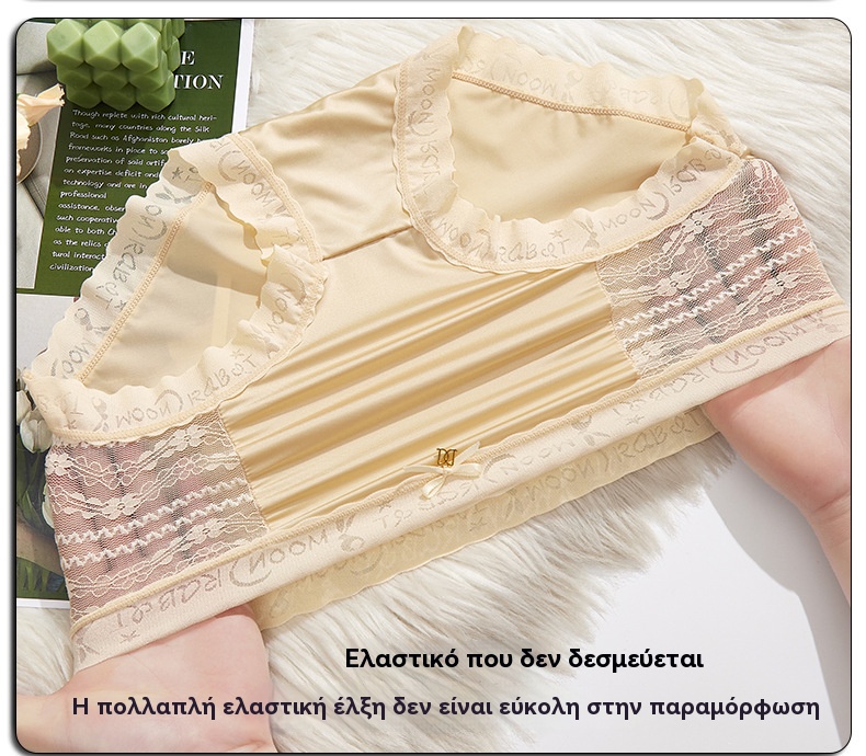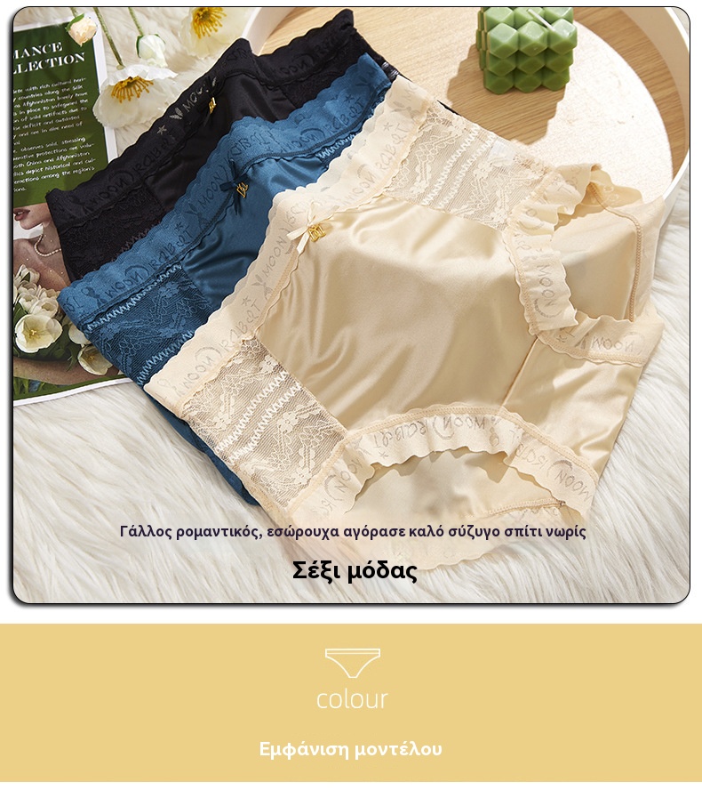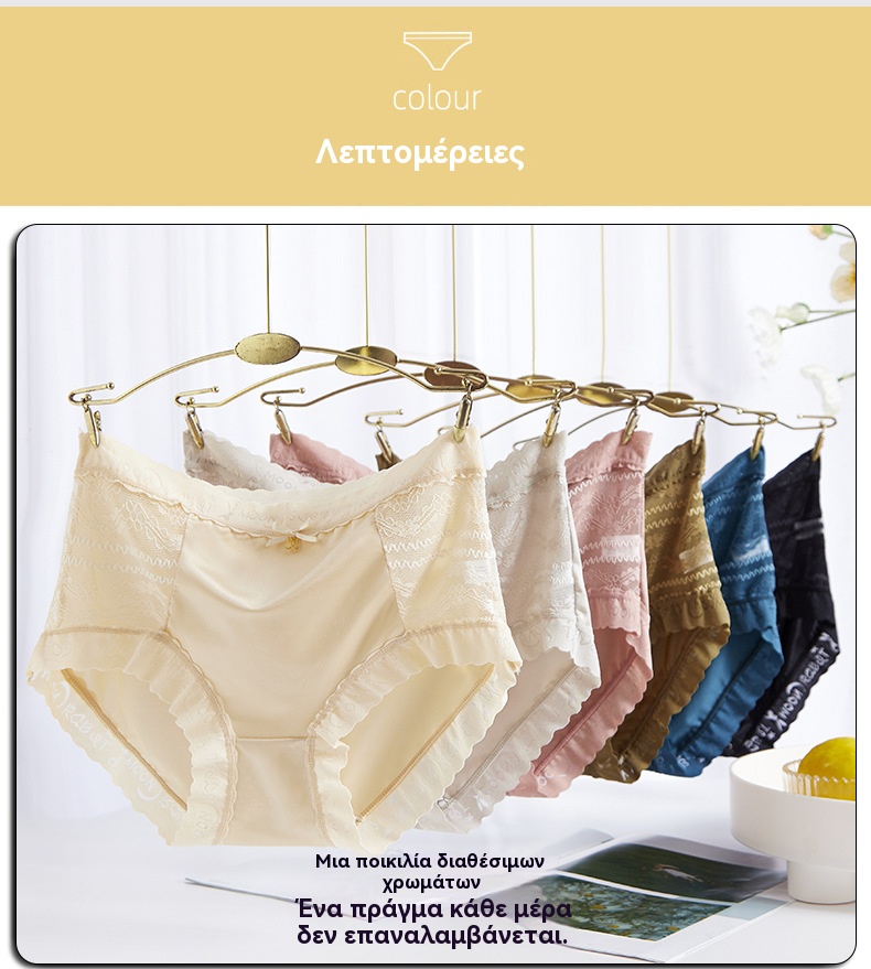 🩲♥【6 τεμαχίων】Άνετα και φιλικά προς το δέρμα, γυναικεία εσώρουχα plus size με ψηλή μέση, χωρίς ραφές, που ανορθώνουν τους γοφούς και έχουν κοίλη δαντέλα.