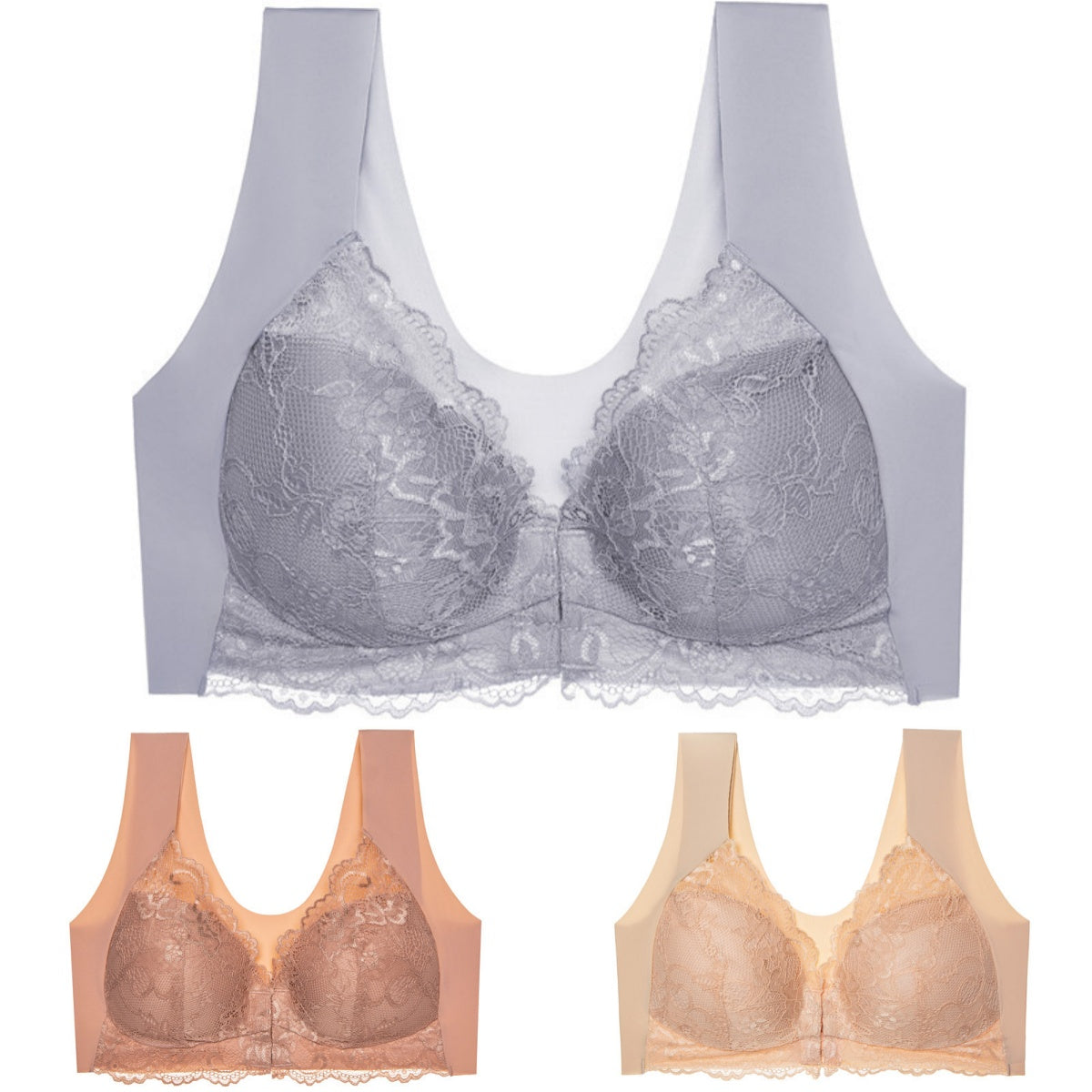 ✨Ειδική προσφορά περιορισμένης διάρκειας🔥【3 τεμάχια】 Μεγάλο μέγεθος με μπροστινό κούμπωμα, σέξι, χωρίς μπανέλα, σουτιέν με όμορφη πλάτη