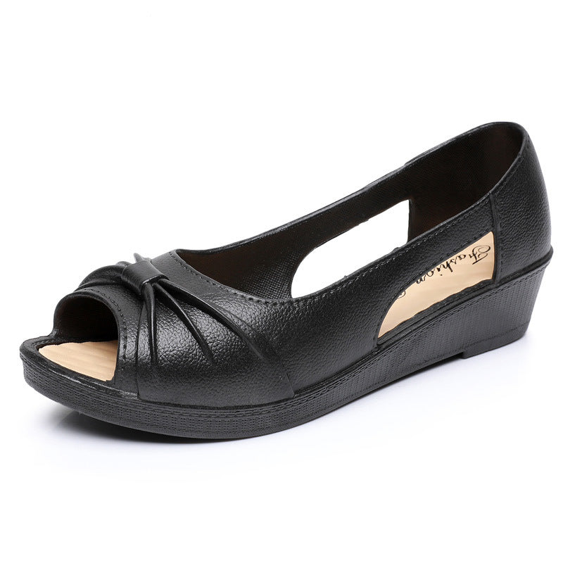 🌼Γυναικεία μονόχρωμα κομψά σανδάλια, μαλακή σόλα πλατφόρμας, casual παπούτσια με άνοιγμα, ανοιχτά δάχτυλα και τακούνι για το καλοκαίρι