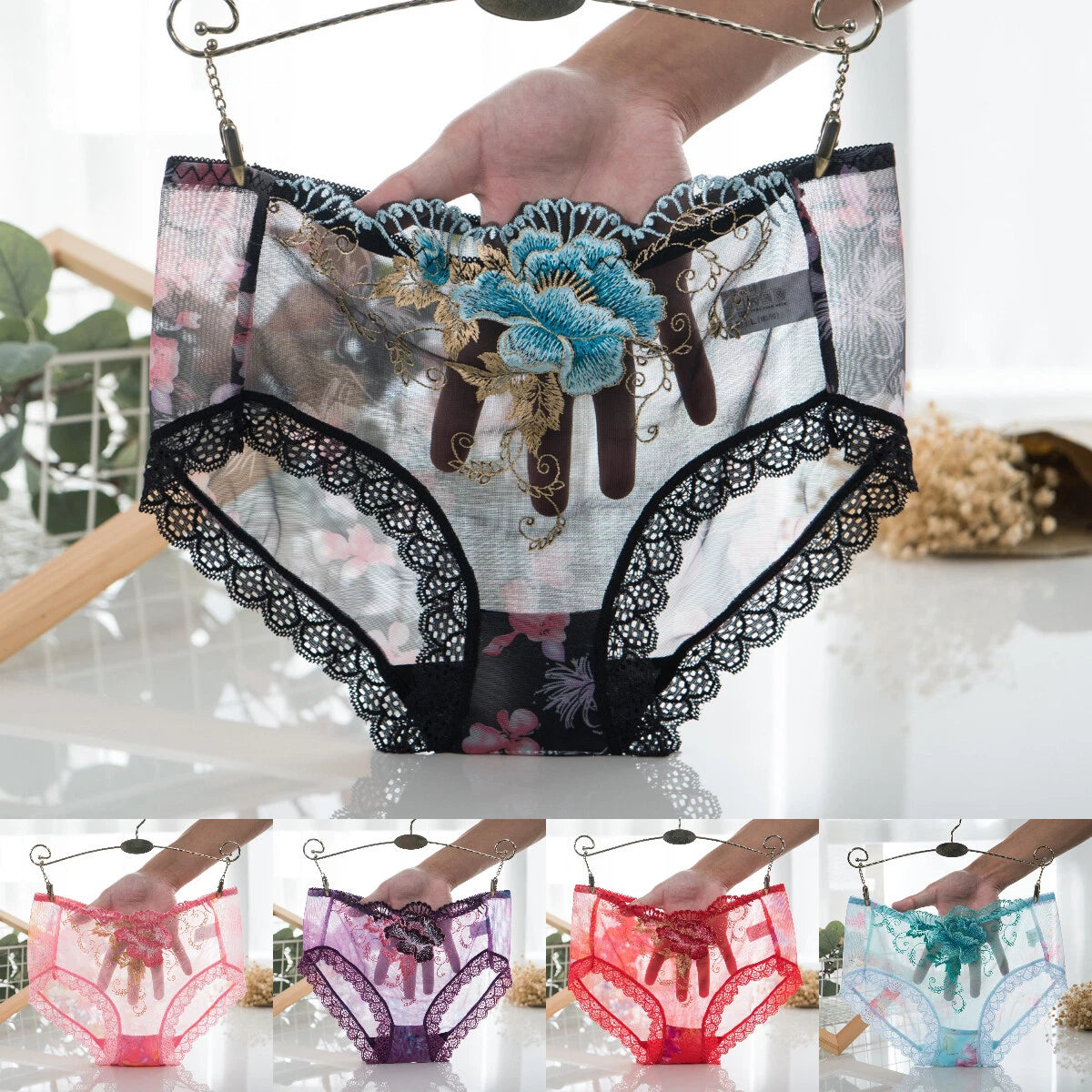 💘【7 στοιχεία】 Εσώρουχα από αντιβακτηριακό βαμβάκι με δαντελένια κεντήματα