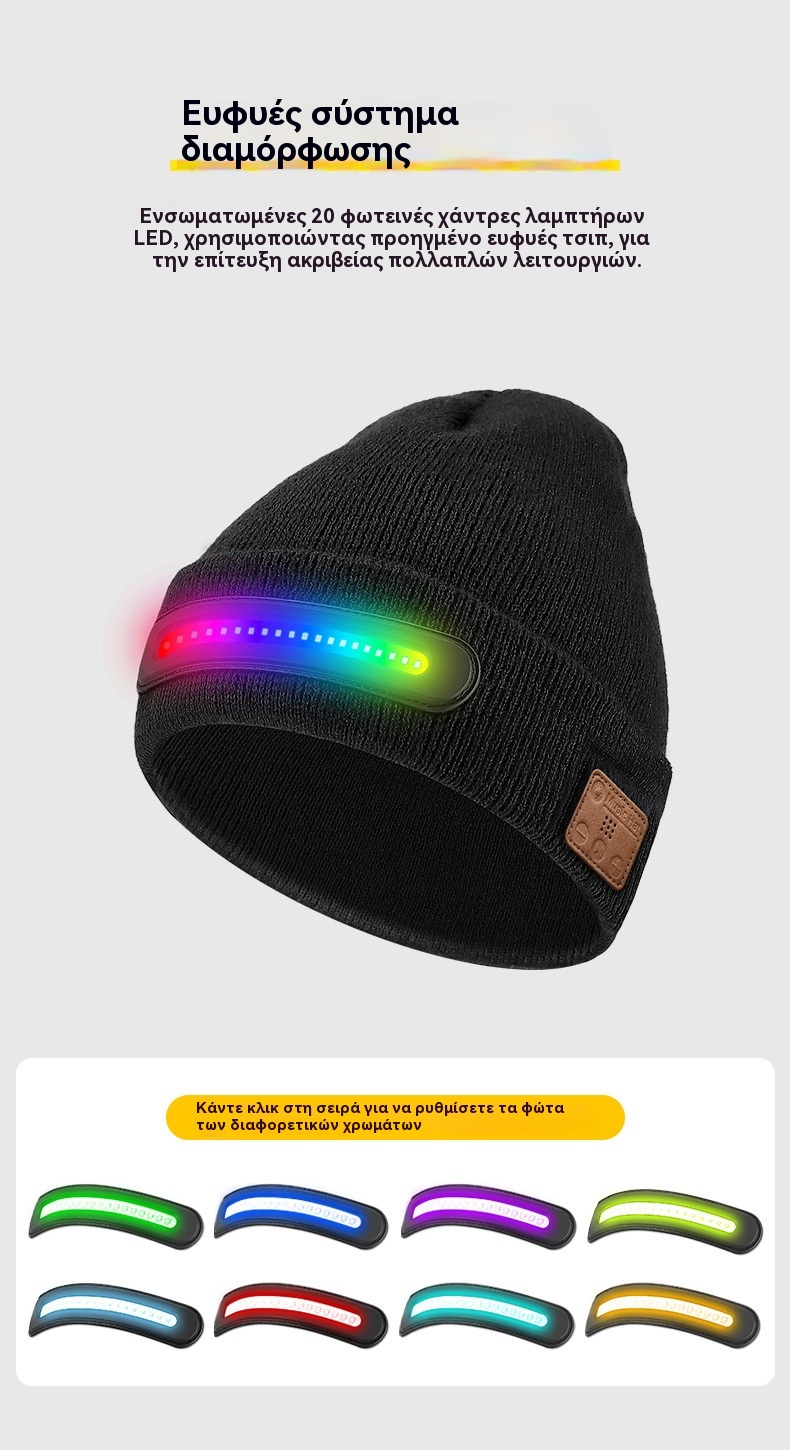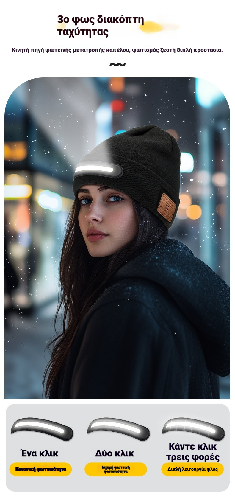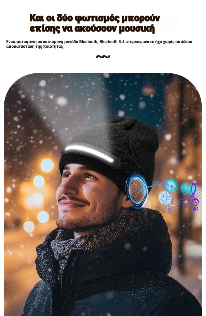 💥【Απίστευτη τιμή!】🔥🧢Επαναφορτιζόμενο σκούφο LED με Bluetooth,Κρατήστε ζεστό💡