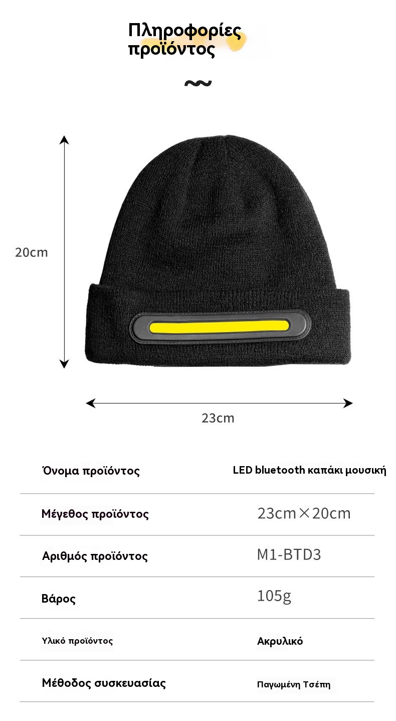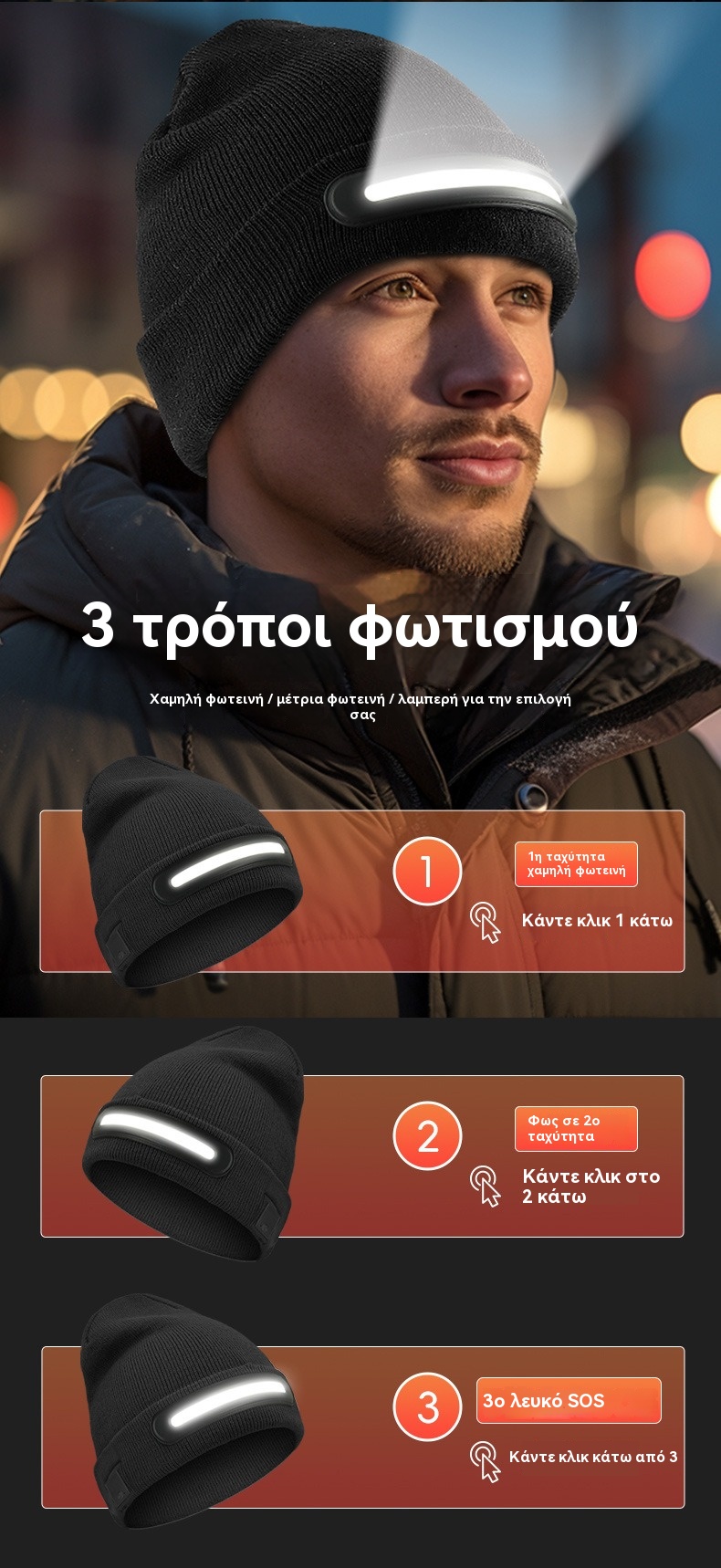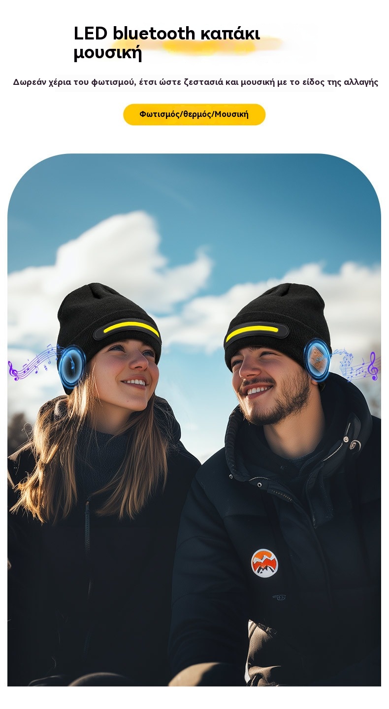 💥【Απίστευτη τιμή!】🔥🧢Επαναφορτιζόμενο σκούφο LED με Bluetooth,Κρατήστε ζεστό💡