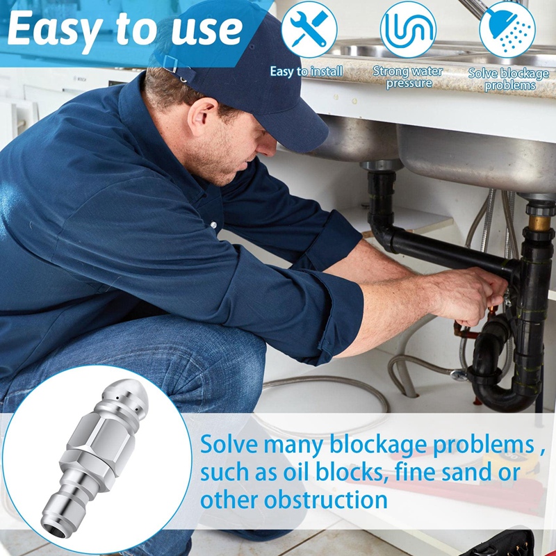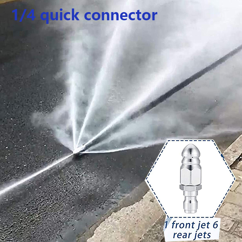 🛠️Ακροφύσιο υψηλής πίεσης από ανοξείδωτο ατσάλι με μπροστινό ακροφύσιο γρήγορης σύνδεσης 1/4 και έξι πίσω ακροφύσια για καθαρισμό και απόφραξη αποχετεύσεων
