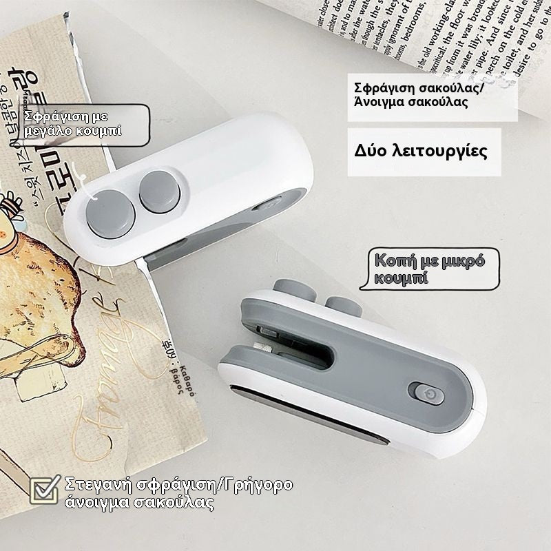 🔥【Αγοράστε 1 και πάρτε 1 δωρεάν】Επαναφορτιζόμενη φορητή μίνι σφραγιστική μηχανή για σνακ, θερμοκολλητική μηχανή που διατηρεί τη φρεσκάδα της