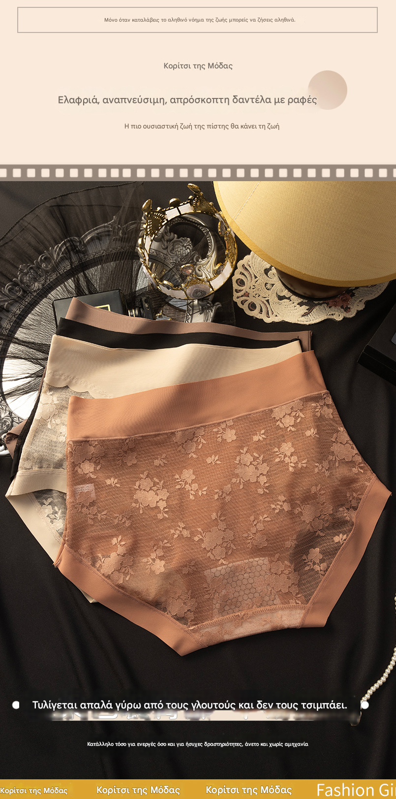 🩲♥【5 τεμαχίων】Γυναικεία εσώρουχα υψηλής ελαστικότητας από δαντέλα χωρίς ραφές για έλεγχο κοιλιάς, σλιπ για διαμόρφωση και ανόρθωση γλουτών