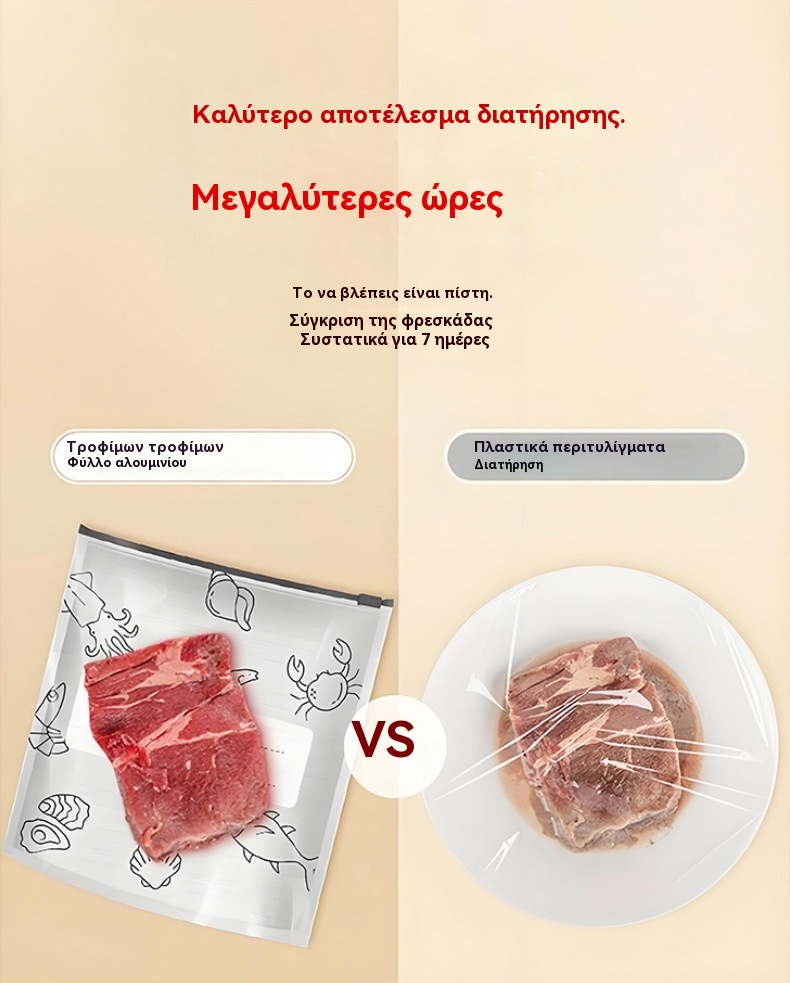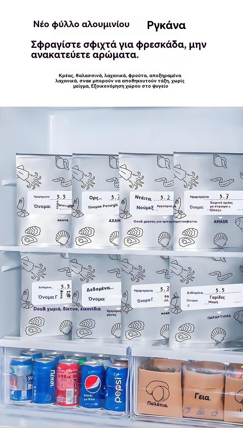 🥩【30/60/90 τεμάχια】Σφραγισμένη σακούλα διατήρησης της φρεσκάδας από αλουμινόχαρτο με φερμουάρ για οικιακή χρήση σε ψυγεία τροφίμων