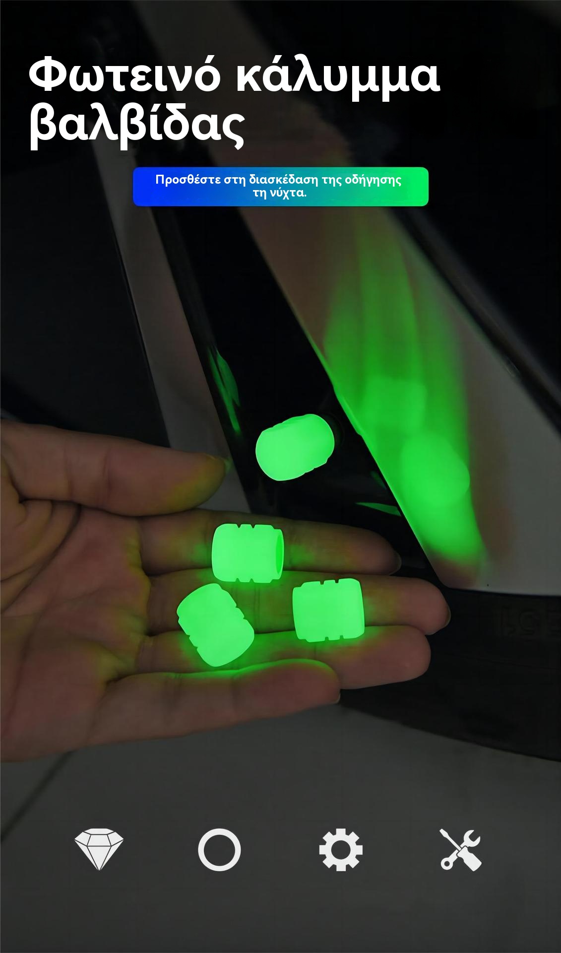 4 συσκευασίες για 22€【16 τεμ】Φωτεινά καλύμματα βαλβίδων για αυτοκίνητα, ηλεκτρικά οχήματα, μοτοσικλέτες, ποδήλατα, φορτηγά και ελαστικά· εξαιρετικά φωτεινά ανακλαστικά καλύμματα πυρήνα βαλβίδων.